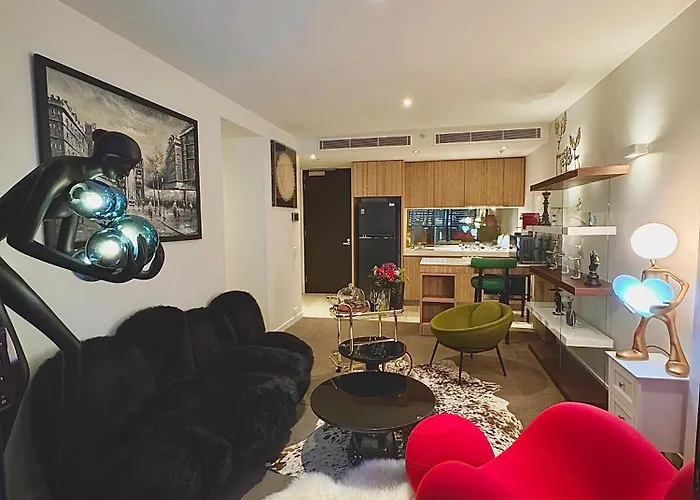 El Lux Apartment Melburne está situado en el distrito Collins Street, a poco más de 5 minutos a pie de la Federation Square. Este apartamento, situado a unos cuantos pasos del Centro Australiano de la Imagen en Movimiento, ofrece una terraza con vistas al jardín.